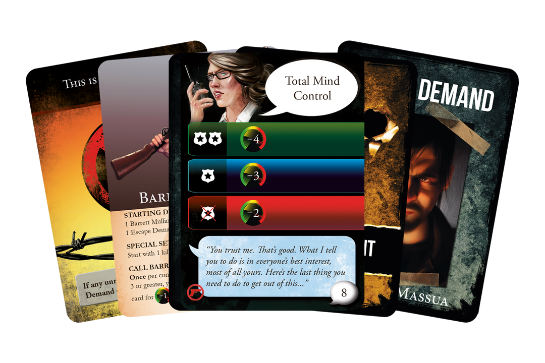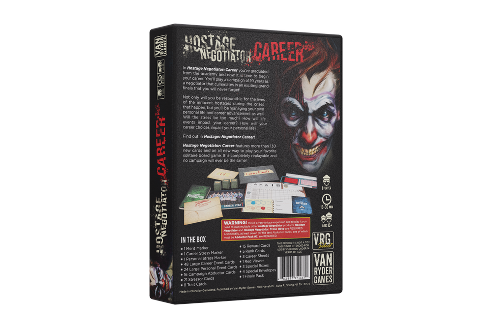 Includes the Negotiator Pack from the 2nd printing of the Hostage Negotiator Kickstarter with 10 Negotiator Cards and the Unknown Abductor.